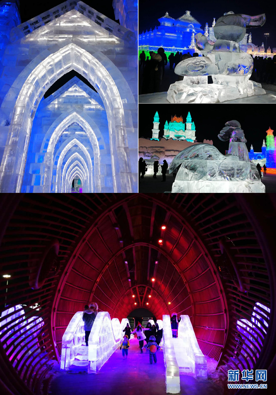 1月5日,游客們在哈爾濱冰雪大世界的各式冰建筑中游玩。 新華網記者 張明宇 攝