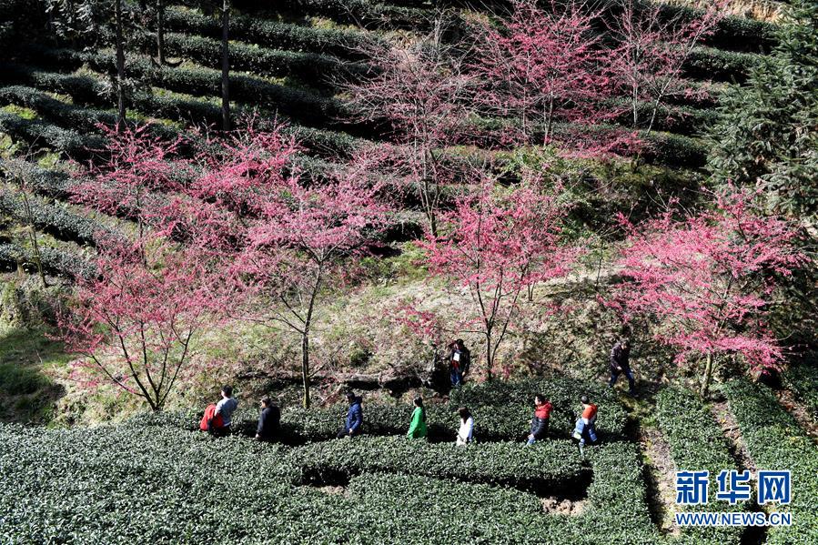 1月9日,游客在連城縣賴源鄉黃宗村的高山茶園賞櫻。 新華社記者 彭張青 攝