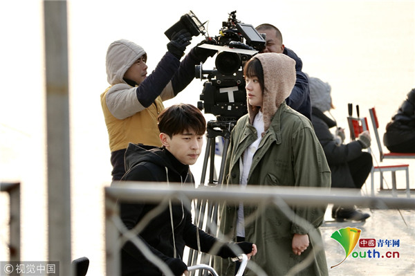 鄧倫馬思純北京后海拍新戲 寒風中騎冰車超敬業