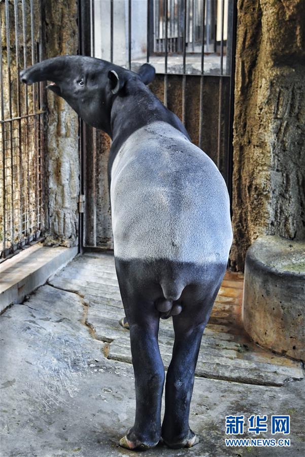 這是1月13日拍攝的生活在北京動物園恒溫室內(nèi)的馬來貘。 新華社記者 李欣 攝