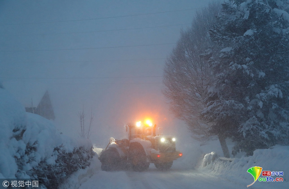 奧地利暴風(fēng)雪持續(xù) 公交車站被積雪掩埋