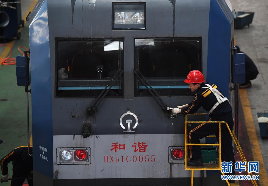 1月16日,重慶機務段職工在對機車雨刮器進行檢修。 臨近春運,為確保春運旅客和貨物列車運輸安全,中國鐵路成都局集團有限公司重慶機務段對全段機車進行專項檢查、整修,為即將到來的春運做準備。 新華社記者王全超攝