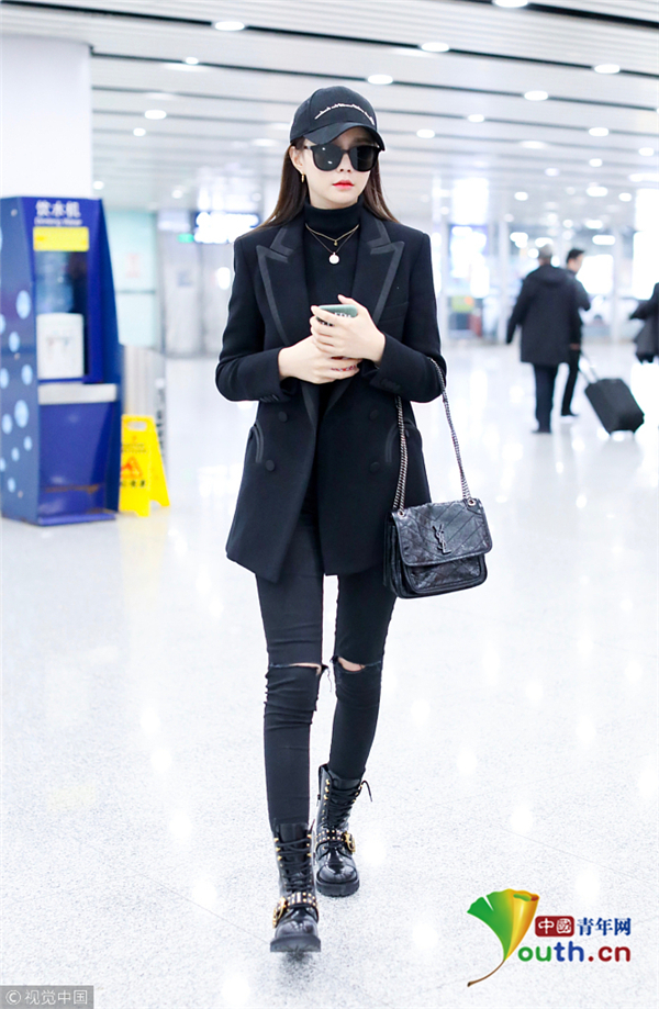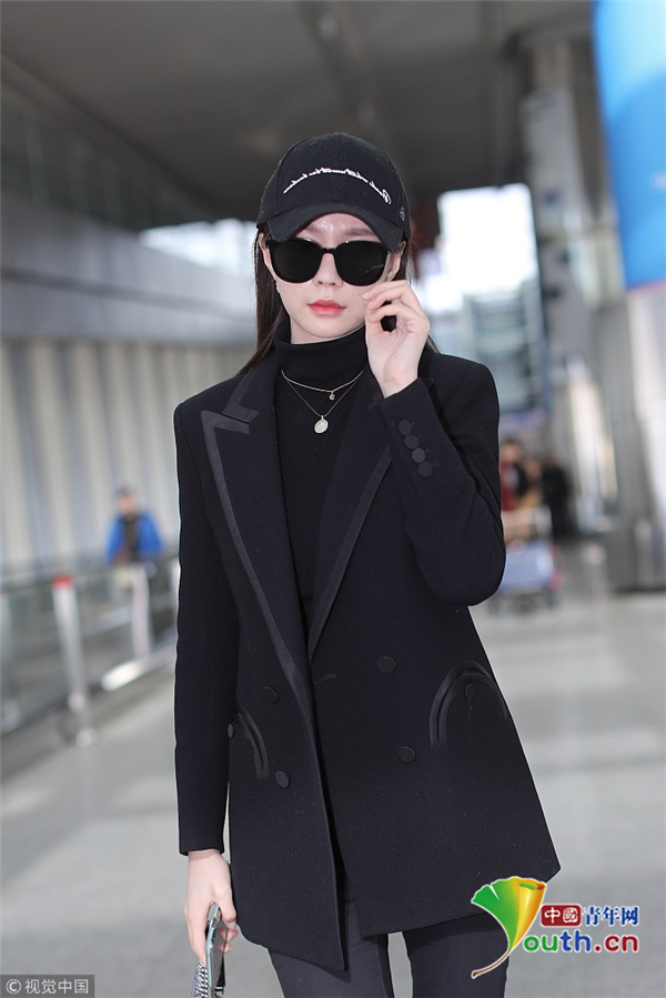 1月22日,北京,沈夢辰現身機場,全黑look又颯又美,戴著黑超遮面從昔日甜妹秒變酷girl!