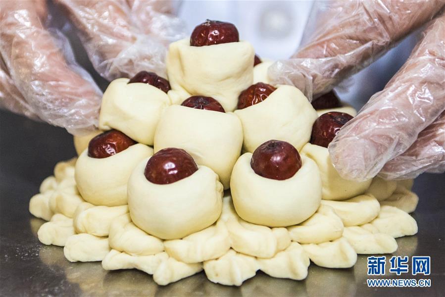 1月25日,河北棗強一家食品公司的面點師在手工制作花糕。 春節臨近,河北省棗強縣面食加工廠的面點師傅們忙著趕制花糕、花饃等傳統面食,以供應節日市場。當地有過年蒸花糕、做花饃的習俗,寓意步步登高,生活一年比一年好。 新華社記者 李曉果攝