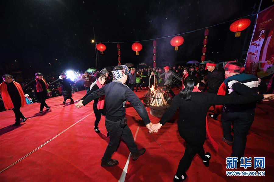 1月31日,隆興村七社村民在“農家春晚”上表演舞蹈。 新華社記者 王全超 攝