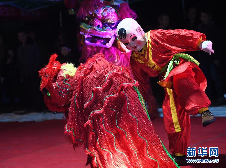 1月31日,隆興村七社村民在“農家春晚”上表演獅舞。新華社記者 王全超 攝