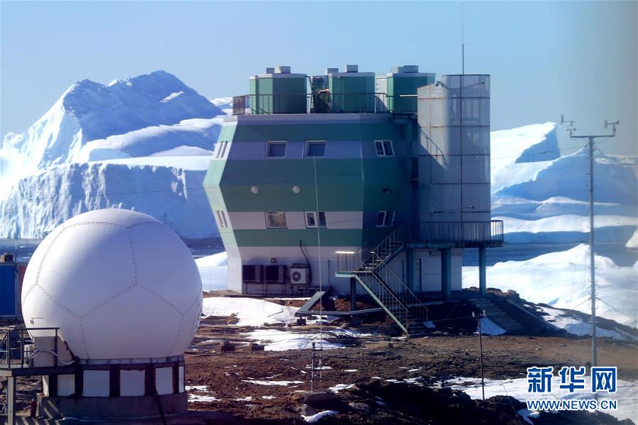 這是中山站標志性建筑“六角樓”附近的冰山群(2月14日攝)。新華社記者 劉詩平 攝
