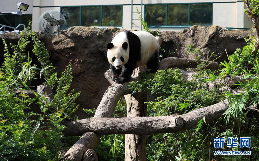 這是4月6日在美國圣迭戈動(dòng)物園熊貓館拍攝的大熊貓“白云”。新華社記者李穎攝