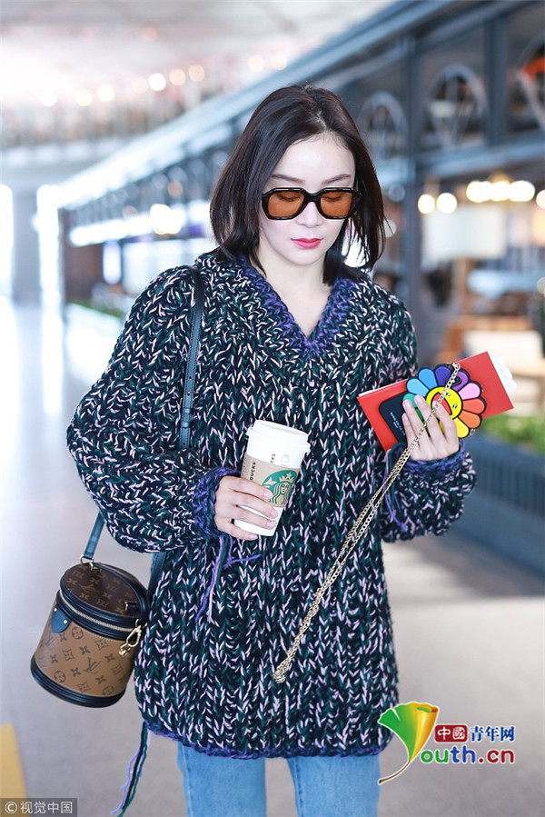 2019年4月10日,北京,袁姍姍現身機場。她穿碎花毛衣低調玩文藝,戴茶色墨鏡手捧咖啡,露腳踝美腿纖細,休閑打扮隨意又愜意,時尚有型舒適十足。