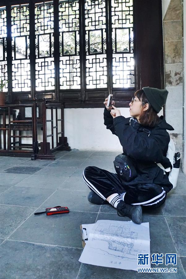 2019年4月1日,一名園林景觀專業(yè)的大學(xué)生在中國蘇州滄浪亭內(nèi)拍照。2000年,滄浪亭和藝圃、耦園、獅子林、退思園作為蘇州古典園林的擴展項目被列入聯(lián)合國教科文組織世界文化遺產(chǎn)名單。 新華社記者杜涓涓攝