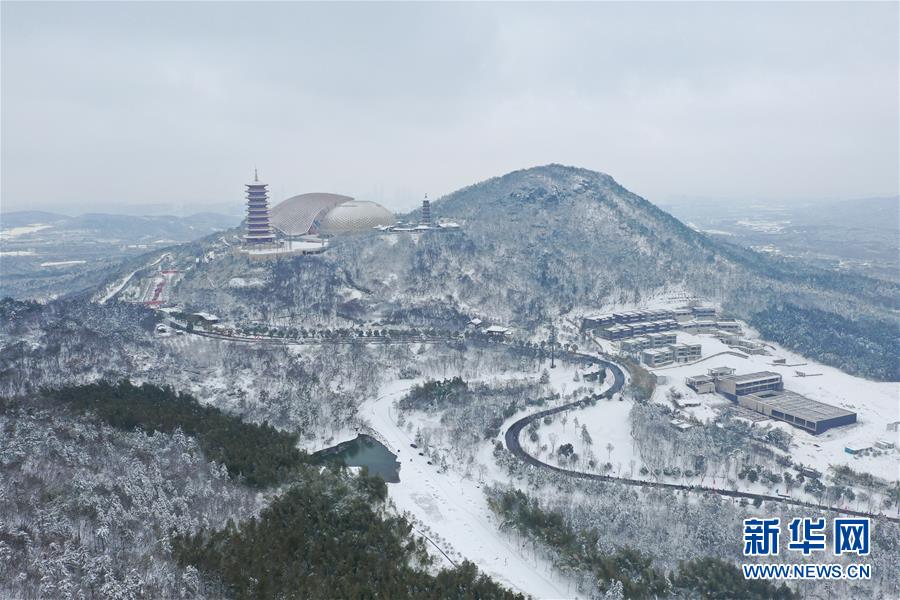 這是2月8日無人機拍攝的南京牛首山文化旅游區雪景。 新華社記者 季春鵬 攝