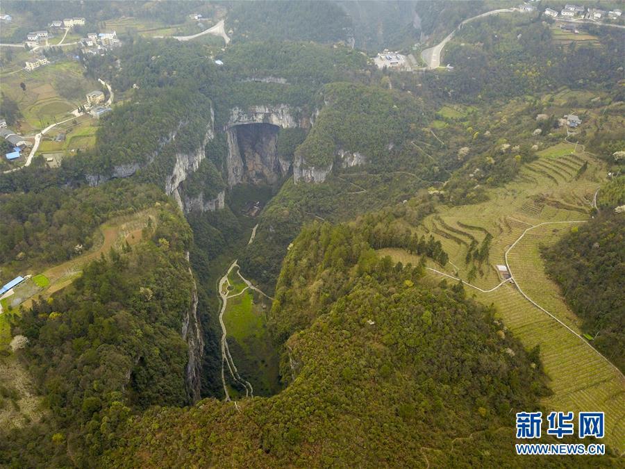 這是3月27日拍攝的天生三橋景區(無人機拍攝)。 隨著天氣轉暖,重慶武隆天生三橋景區風景如畫,氣勢磅礴的天生石橋和綠意盎然的山林相映成趣,吸引眾多游客前來踏春賞景。 新華社記者劉潺攝
