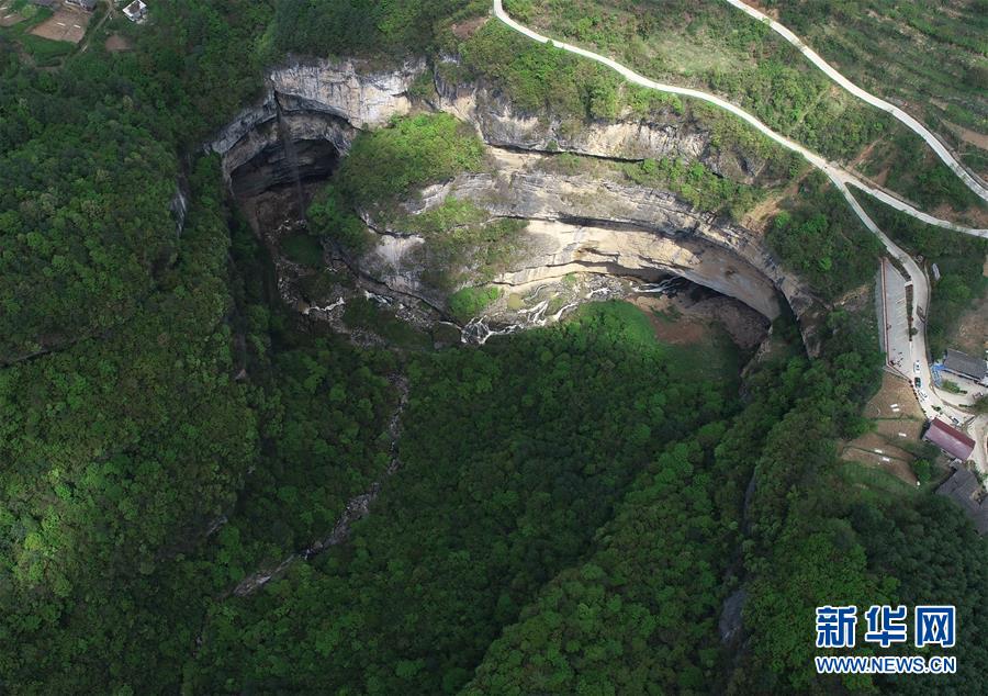 這是4月22日在陜西省漢中市寧強(qiáng)縣火石子村用無人機(jī)拍攝的地洞河天坑。位于陜西省漢中市寧強(qiáng)縣的地洞河天坑,是禪家?guī)r天坑群中規(guī)模最大的一處天坑,坑內(nèi)分布有石鐘乳、石筍,具有極高的地質(zhì)研究價值。 新華社記者 張博文 攝
