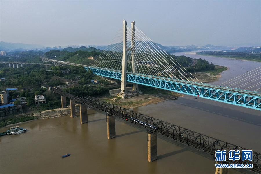 重慶白沙沱長(zhǎng)江大橋(下)和新白沙沱長(zhǎng)江特大橋(上)(4月23日無(wú)人機(jī)拍攝)。 4月23日下午5點(diǎn)40分,隨著重慶白沙沱長(zhǎng)江大橋通行的最后一列客運(yùn)列車(chē)順利通過(guò),這座“服役”了59年的重慶首座長(zhǎng)江大橋進(jìn)入“退役”倒計(jì)時(shí)。4月24日后,所有列車(chē)將改線經(jīng)距白沙沱長(zhǎng)江大橋約100米的新白沙沱長(zhǎng)江特大橋通行,新橋“接力”老橋,運(yùn)輸能力將得到大幅提升。 白沙沱長(zhǎng)江大橋于1958年開(kāi)工,1960年通過(guò)首趟列車(chē),是繼武漢長(zhǎng)江大橋之后的第二座長(zhǎng)江大橋。 新華社記者 劉潺 攝