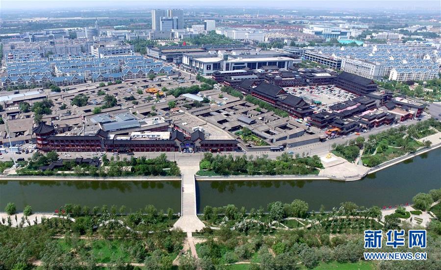 天津楊柳青古鎮運河景觀(2017年7月13日無人機拍攝)。 運河穿城過,古鎮草色新,千年畫鄉楊柳青自傳統中浸潤出與眾不同的顏色。40年斗轉星移,這個沉淀千年的小鎮,用別樣的風姿講述了一個歷史與現在碰撞而出的改革“新”故事。 新華社記者岳月偉攝
