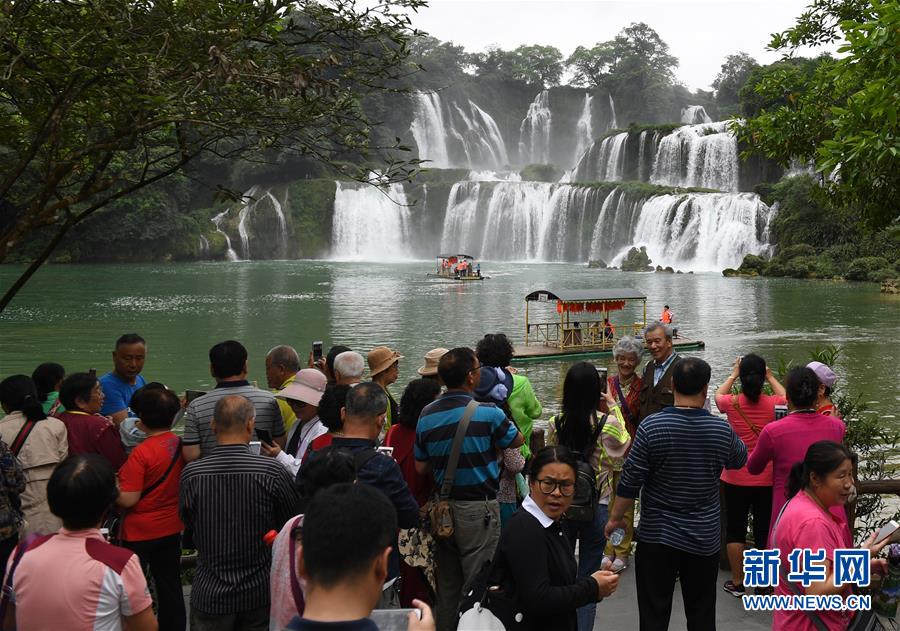 游客在廣西大新縣德天瀑布景區觀光(4月17日攝)。 新華社記者 陸波岸 攝