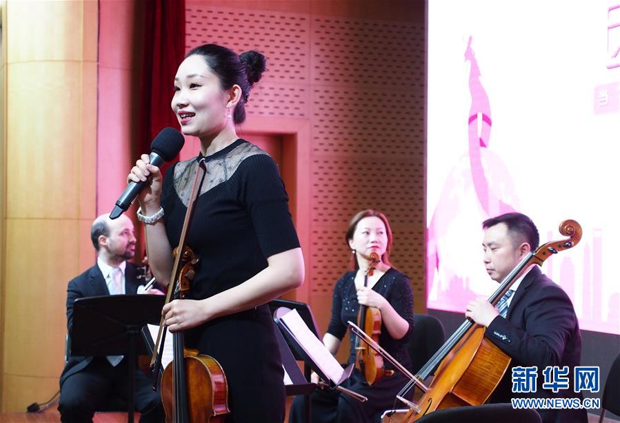 4月25日,上海交響樂團的中提琴手巴桐在演奏前介紹曲目。 當日,第一場“全城交響·上交為你而來”音樂會在復旦大學附屬腫瘤醫院報告廳奏響,為患者及醫護人員獻上一場專屬音樂會。“全城交響·上交為你而來”是上海交響樂團2019年向全上海的機構及個人開放的公益演出項目。 新華社記者 任瓏 攝