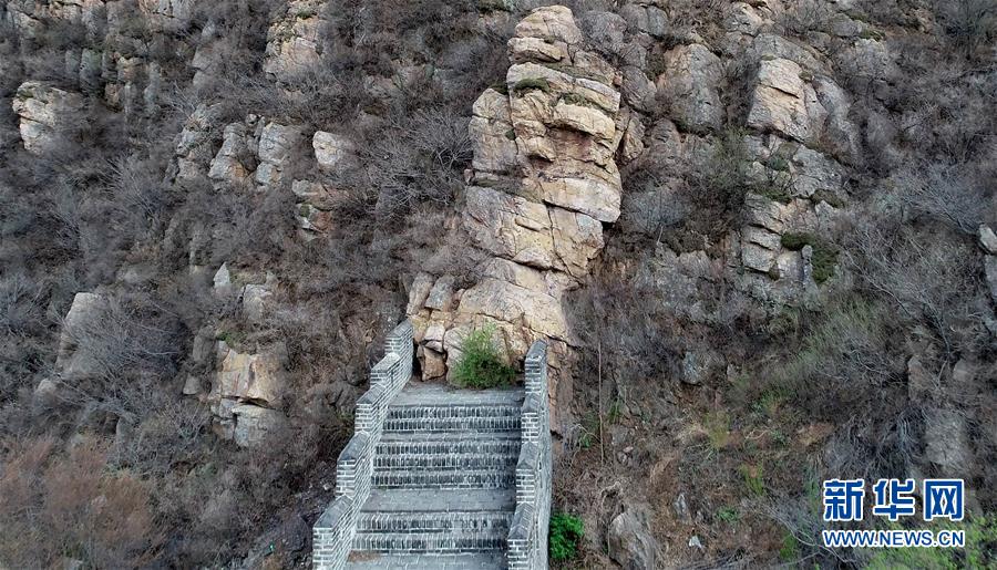 黃崖關長城東側的起點與陡峭的山崖相連(4月18日攝)。新華社記者 岳月偉 攝