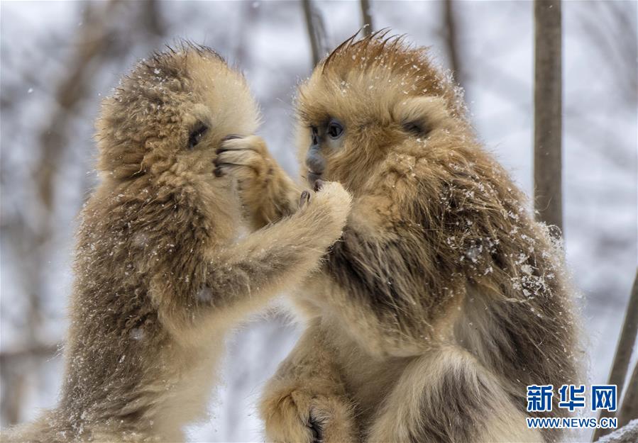 在神農架國家公園大龍潭拍攝的金絲猴(2017年1月10日攝)。 新華社記者 杜華舉 攝