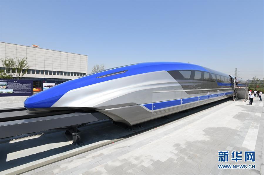 5月23日在青島拍攝的我國時速600公里高速磁浮試驗樣車。 5月23日10時50分,我國時速600公里高速磁浮試驗樣車在青島下線。這標志著我國在高速磁浮技術領域實現重大突破。 新華社記者李紫恒攝