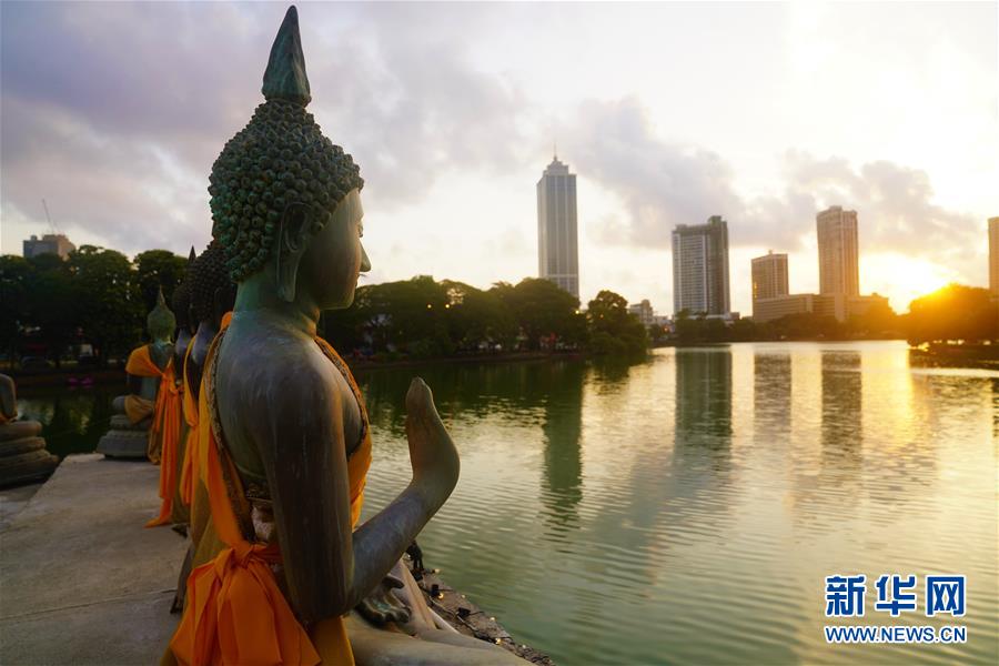 這是夕陽(yáng)下的斯里蘭卡科倫坡水中廟佛像(5月27日攝)。 在科倫坡貝拉湖上有一座木造樓閣——水中廟。木造建筑上面覆蓋著藍(lán)瓦,外圍環(huán)繞著線條優(yōu)美的佛像。樓閣外高臺(tái)上供奉的佛像,與不遠(yuǎn)處的高層建筑相互映照。祥和寧?kù)o的水中廟已成為人們修心、祈福的重要場(chǎng)所。 新華社記者唐璐攝