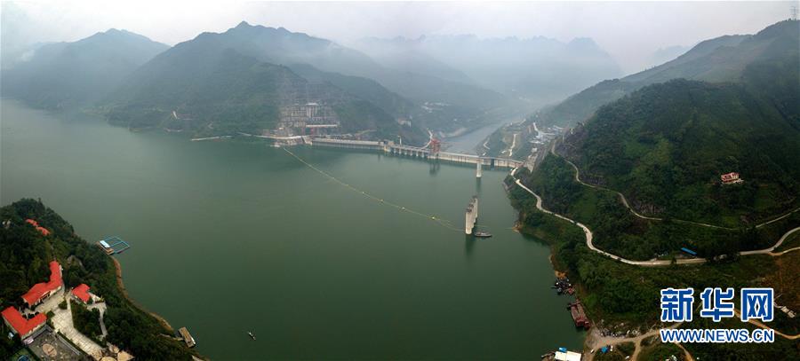 這是用無人機拍攝的建設中的烏東德水電站全景(5月30日攝)。 新華社記者陳曄華攝