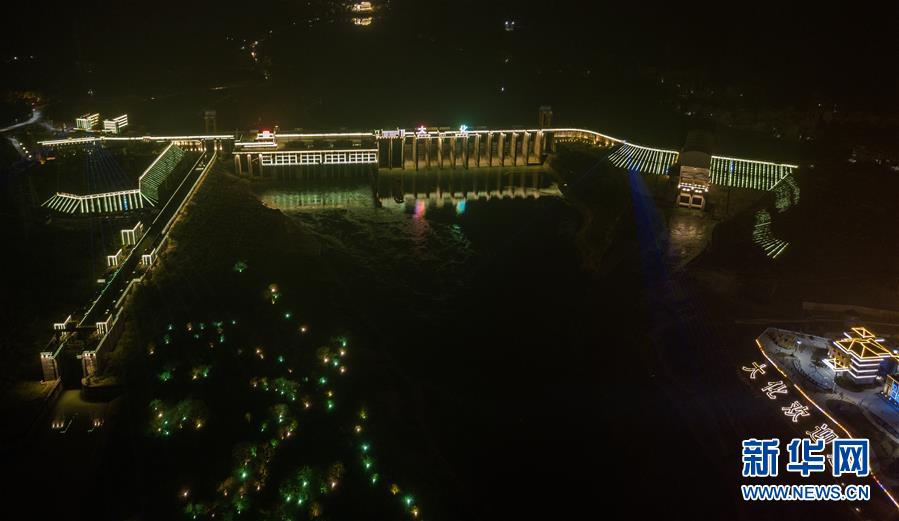 這是位于廣西大化縣境內的大化水電站夜景(10月21日無人機拍攝)。廣西紅水河是我國十二大水電基地之一,目前建有天生橋一級、天生橋二級、平班、龍灘、巖灘、大化、百龍灘、樂灘、橋鞏、大藤峽10個大型梯級電站及下游西江上的長洲水利樞紐。這些水電站既是我國“西電東送”的主力軍之一,又對珠三角地區遠離洪災侵襲有著重要的調節功能。近期,新華社記者用無人機從空中俯瞰這些水電基地群,呈現它們的別樣之美。新華社記者 張愛林 攝