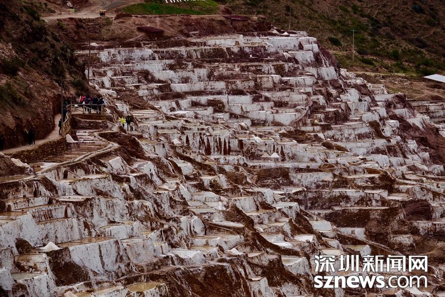 大面積鹽池閃閃發光,格外搶眼,宛如鑲嵌在安第斯山谷中的白色馬賽克。李仁奇攝