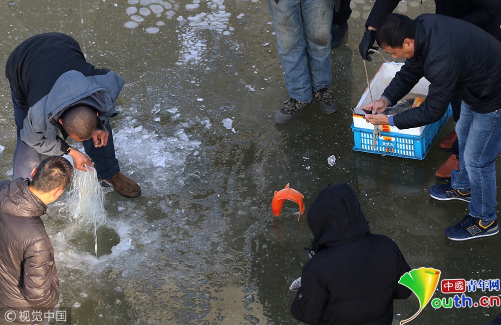 2018年12月26日,吉林松原,查干湖迎來了“紅網”,單網捕撈約30萬斤。