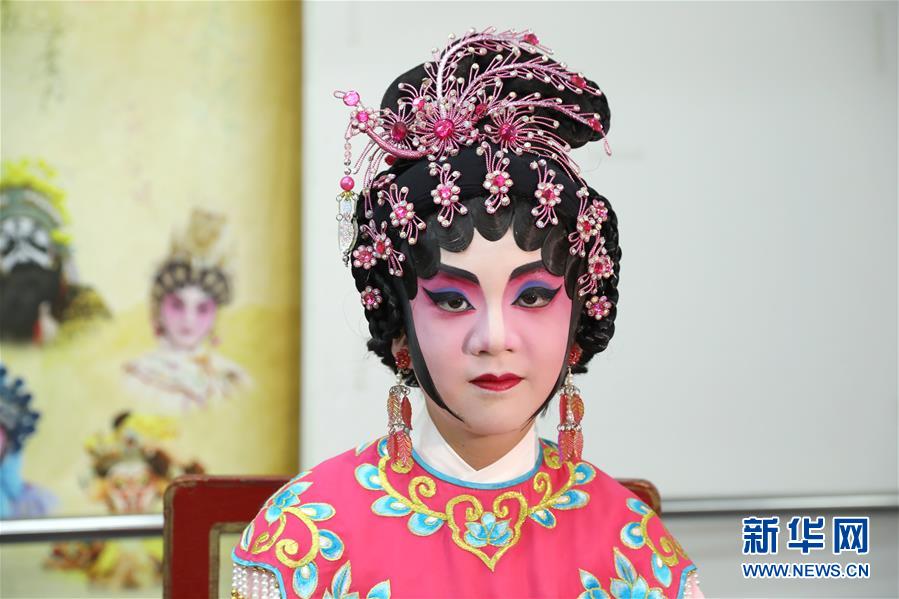 粵劇小演員陸瑞徽飾演折子戲《艷曲醉周郎》里的小喬(6月8日攝)。 聲輝粵劇推廣協(xié)會(huì)成立于2003年,是香港重要粵劇藝術(shù)團(tuán)體之一,致力于向青少年推廣粵劇。協(xié)會(huì)目前有兩個(gè)初班,3個(gè)中班,一個(gè)青少年班。粵劇又稱“廣東大戲”,表演技藝包括“唱做念打”,即唱功、身段、臺(tái)詞、武打,主要流行于廣東、廣西和香港、澳門等地區(qū)。2009年,粵劇被列入聯(lián)合國教科文組織人類非物質(zhì)文化遺產(chǎn)代表作名錄,今年正逢十周年。 新華社記者 吳曉初 攝