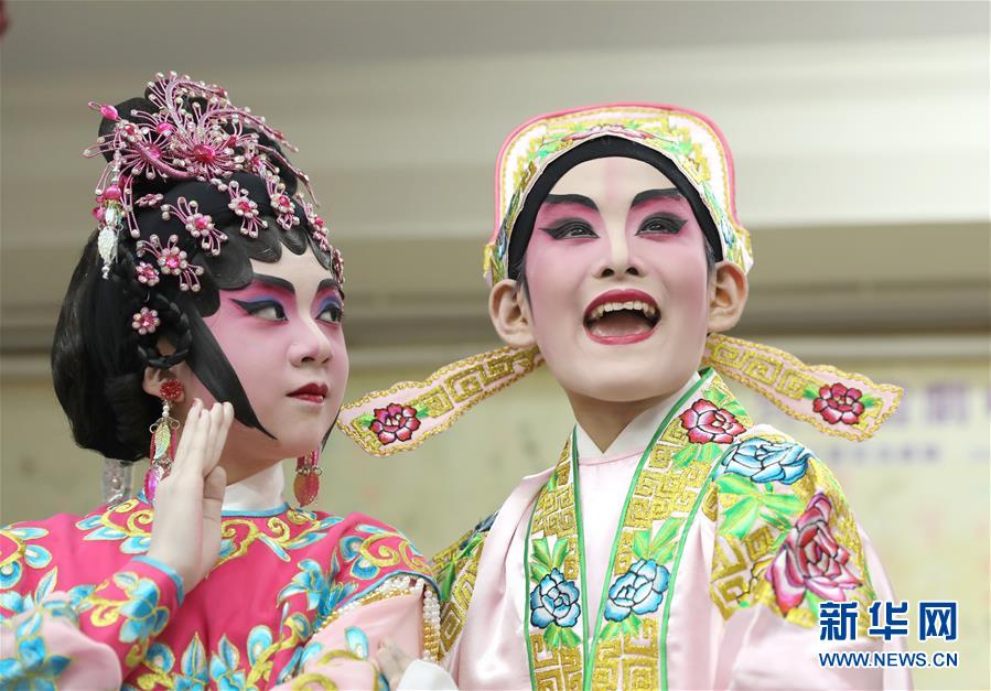 陸瑞徽(左)和利文喆在表演折子戲《艷曲醉周郎》(6月8日攝)。 聲輝粵劇推廣協會成立于2003年,是香港重要粵劇藝術團體之一,致力于向青少年推廣粵劇。協會目前有兩個初班,3個中班,一個青少年班?;泟∮址Q“廣東大戲”,表演技藝包括“唱做念打”,即唱功、身段、臺詞、武打,主要流行于廣東、廣西和香港、澳門等地區。2009年,粵劇被列入聯合國教科文組織人類非物質文化遺產代表作名錄,今年正逢十周年。 新華社記者 吳曉初 攝