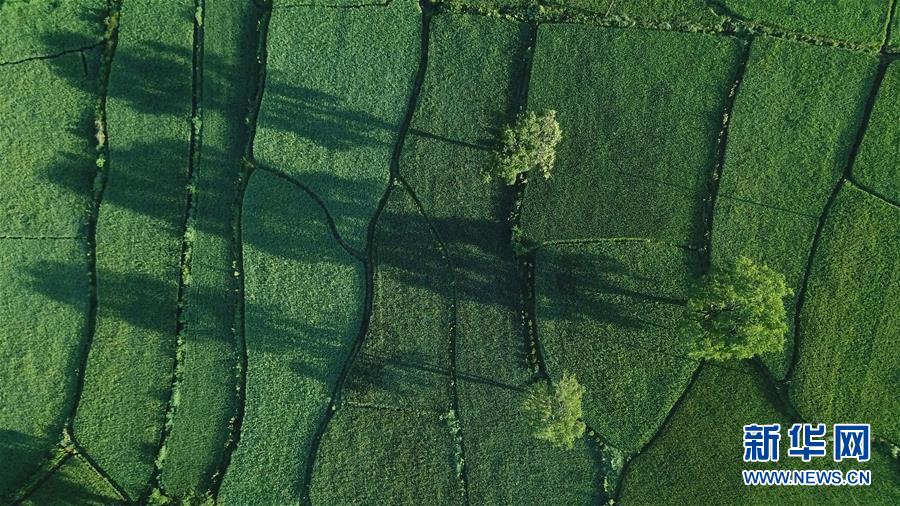 這是8月4日無人機拍攝的安徽黟縣宏村風景區(qū)附近的農田晨景。新華社記者 張端 攝