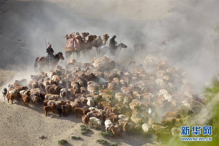 6月6日,新疆阿勒泰地區福海縣牧民趕著牲畜向夏季牧場遷徙。 新華社記者 丁磊 攝