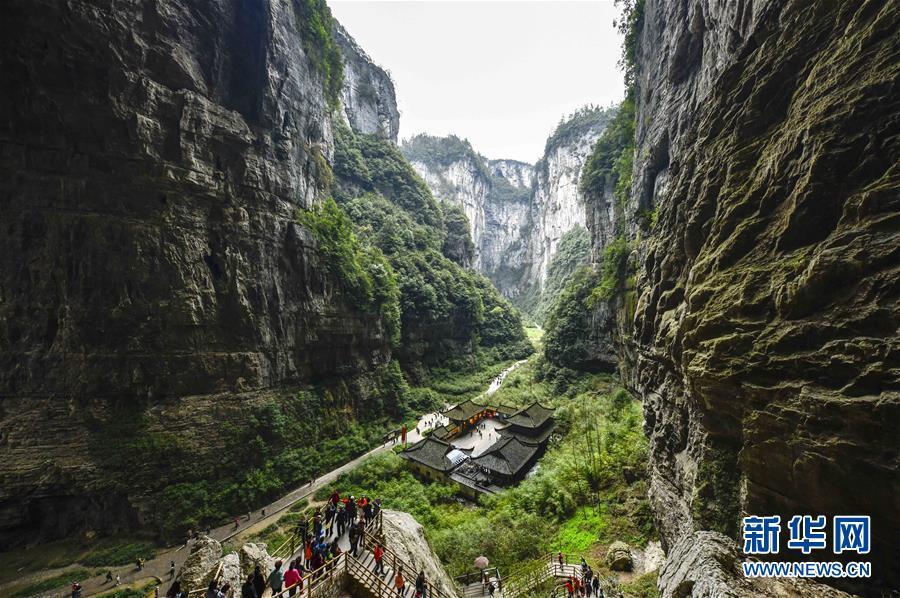 游客在天生三橋景區游覽(3月27日攝)。新華社記者劉潺攝
