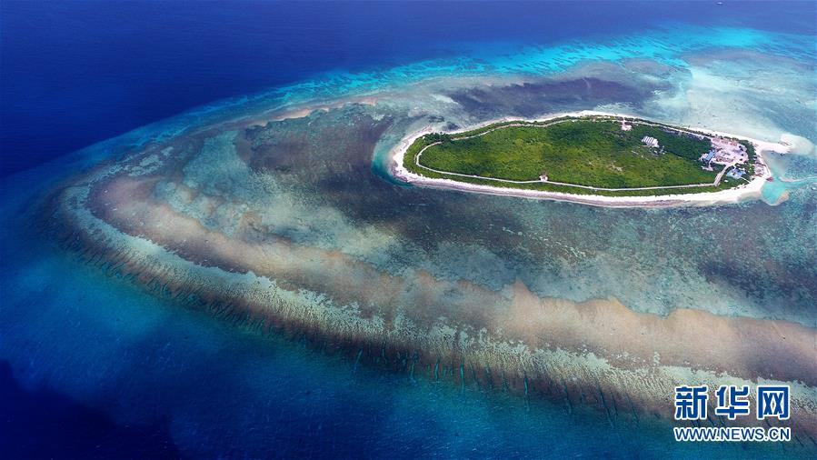 這是位于西沙永樂群島的晉卿島(2017年4月23日無人機拍攝)。新華社記者郭程攝
