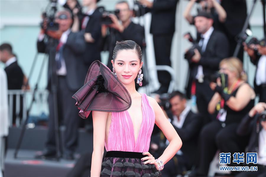8月28日,在意大利威尼斯,中國(guó)演員鐘楚曦亮相開(kāi)幕式紅毯。新華社記者 程婷婷 攝