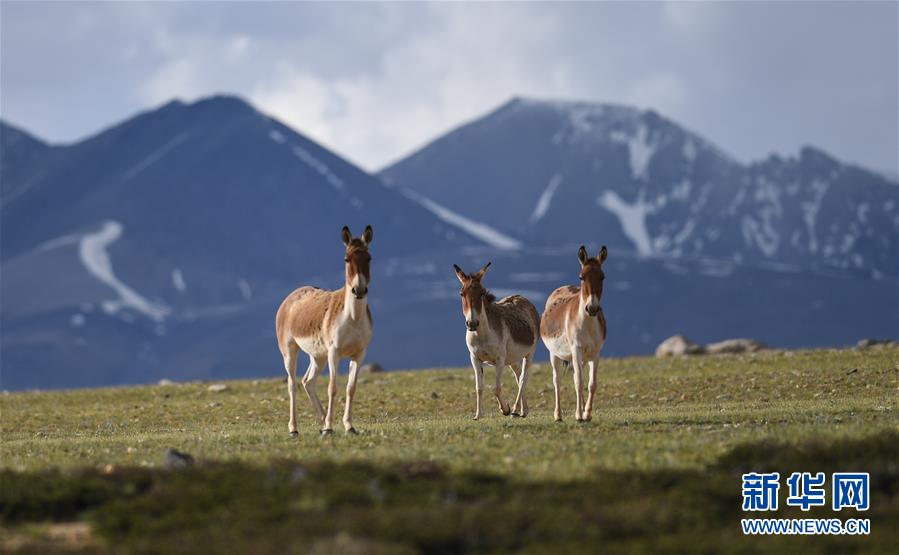 西藏札達(dá)縣香孜鄉(xiāng)熱布加林牧場上的藏野驢(7月29日攝)。新華社記者 晉美多吉 攝