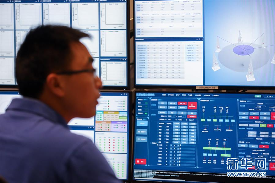 8月30日凌晨,工作人員在“中國天眼”總控室內工作 。新華社記者 歐東衢 攝