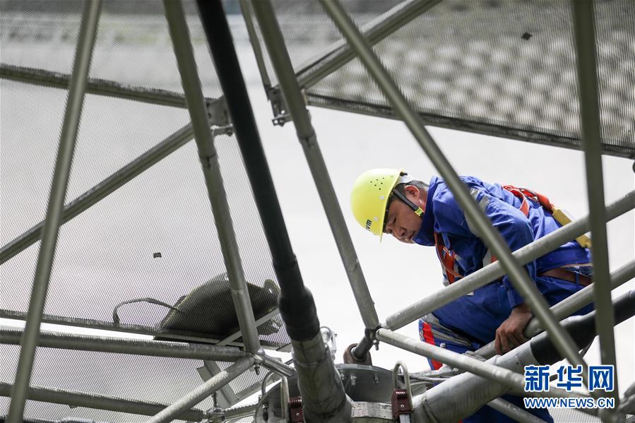 8月28日,工作人員在“中國天眼”內進行檢修。新華社記者 歐東衢 攝