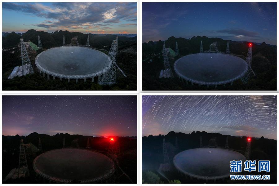 8月28日拍攝的不同光線環境下的“中國天眼”(拼版照片,檢修期間拍攝)。新華社記者 歐東衢 攝