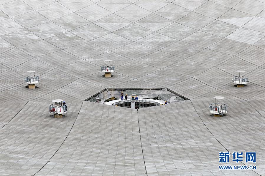 8月28日,工作人員在對(duì)FAST進(jìn)行檢修。 近日,工作人員對(duì)“中國(guó)天眼”進(jìn)行日常維護(hù)和檢修,給 “天眼”進(jìn)行全面“體檢”。被譽(yù)為“中國(guó)天眼”的500米口徑球面射電望遠(yuǎn)鏡(FAST)于2016年9月25日落成啟用,即將迎來(lái)落成三周年。 新華社記者 歐東衢 攝