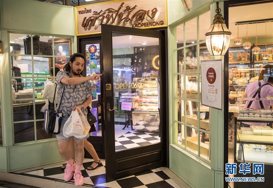 9月1日,顧客在泰國曼谷著名的“九姐妹甜點(diǎn)”店購買傳統(tǒng)泰式甜點(diǎn)。新華社記者 張可任 攝