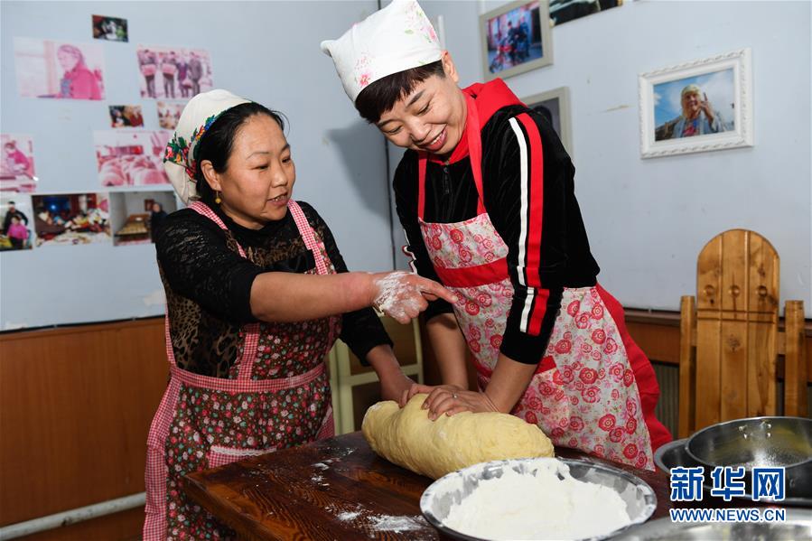 8月27日,付艷梅在列巴房教一名學徒揉面團。新華社記者劉磊攝
