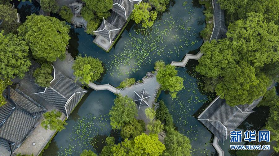 這是5月21日拍攝的蘇州拙政園局部(無人機拍攝)。 新華社記者 沈伯韓 攝