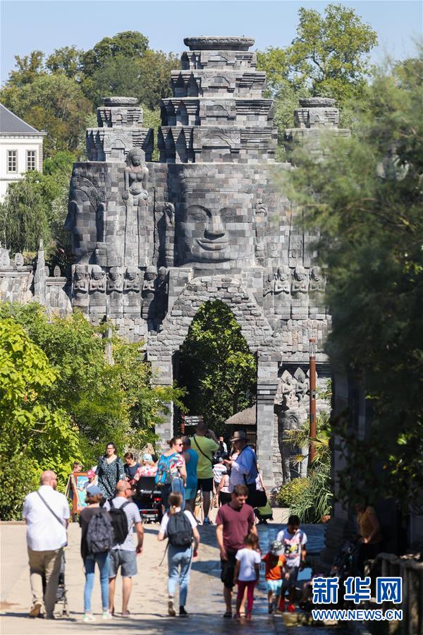 8月24日,在比利時布呂熱萊特市,游客在天堂動物園具有東南亞風情的園林區游玩。新華社記者 鄭煥松 攝