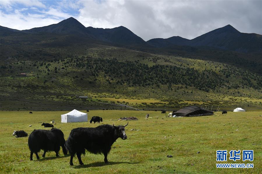這是9月8日在四川省康定市呷巴鄉俄達門巴村附近拍攝的一處藏族牧民的牦牛牧場。新華社記者孫瑞博攝