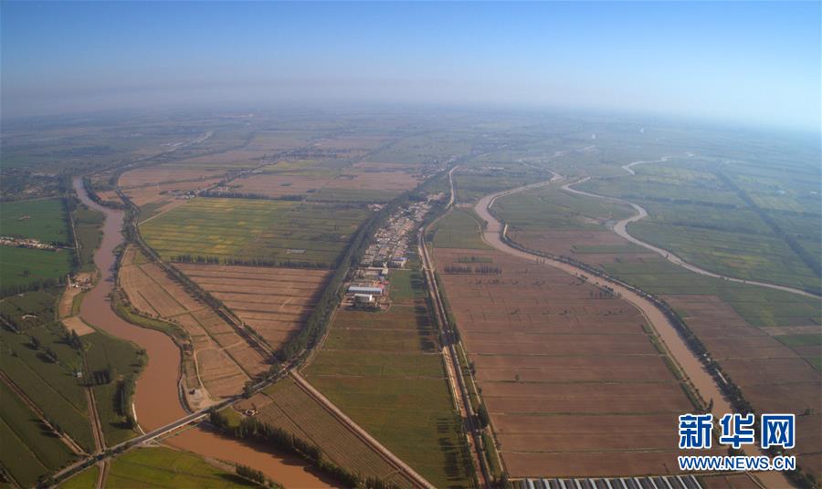 青銅峽市的寧夏引黃灌區(9月1日無人機拍攝)。新華社記者劉詩平攝