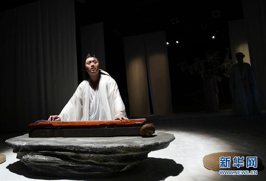 9月16日,演員在話劇《廣陵絕》中表演。 當(dāng)日,話劇《廣陵絕》在北京人藝實驗劇場上演。該劇由中國戲劇家協(xié)會副主席王曉鷹任藝術(shù)指導(dǎo),龐貝編劇,通過魏晉名士嵇康與戰(zhàn)國刺客聶政的“同構(gòu)”拼貼,旨在展現(xiàn)中國傳統(tǒng)“道義”精神,反思生命與自由沖突,探討人的主體意識覺醒。 新華社記者 金良快 攝