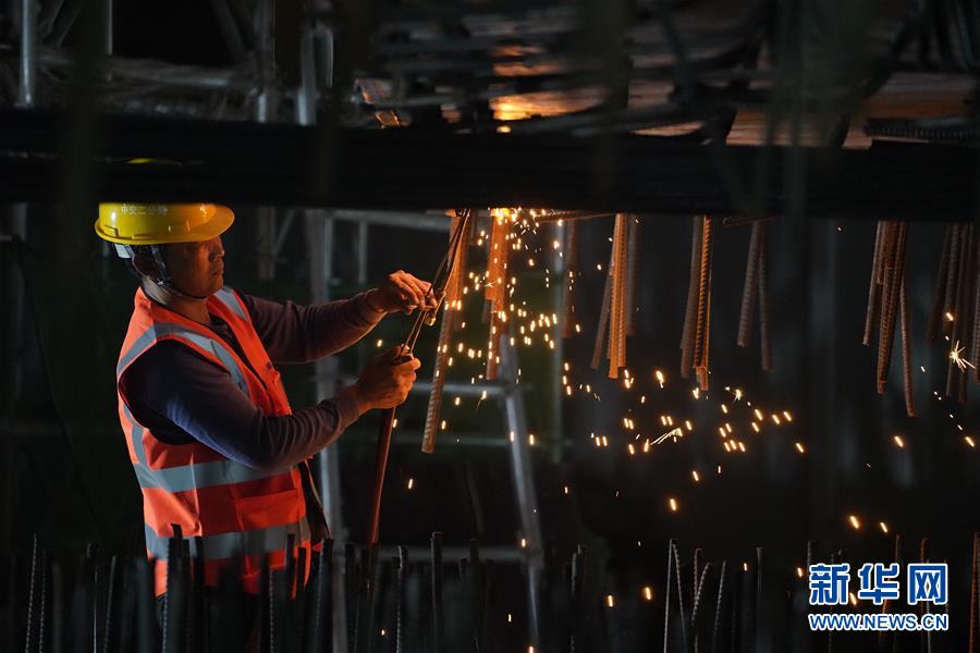 8月27日凌晨,施工人員在進行橋梁轉體施工。新華社記者楊世堯攝