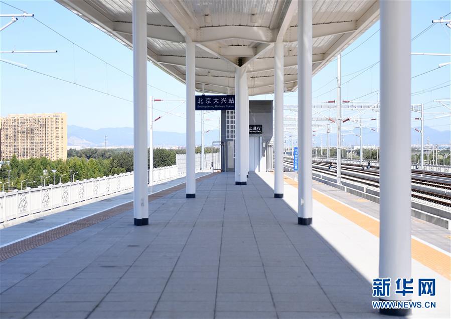 9月18日拍攝的京雄城際北京大興站站臺。新華社記者張晨霖攝